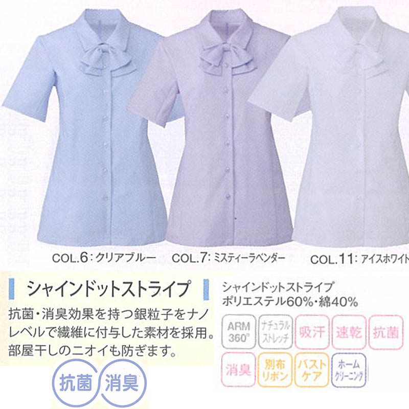 半袖ブラウスレディース シャツ抗菌・消臭機能クリアブルー/ミスティラベンダー/アイスホワイト/クリアピンク