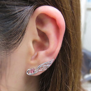 1日限定【10%OFFクーポン&P2倍】 イヤーカフ ピアス・イヤークリップ・K10・ピンクトルマリンピアス・羽・白鳥