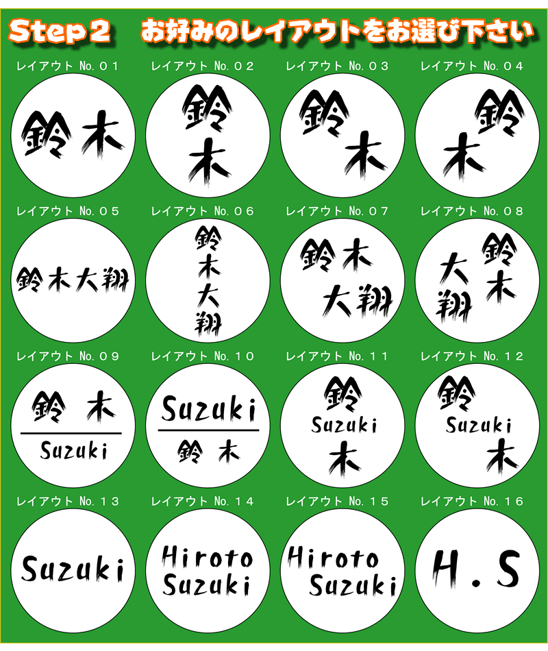 ・120種以上の豊富な書体と、16種のレイアウトから選んで頂けます。